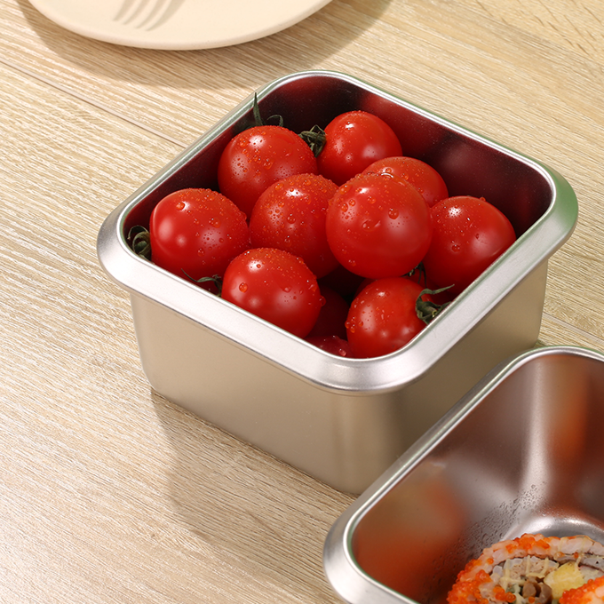 金属材质的保鲜盒相比其它材质保鲜盒 优势在于其可以快速导冷从而保鲜食物 从根本上实现抑菌效果。